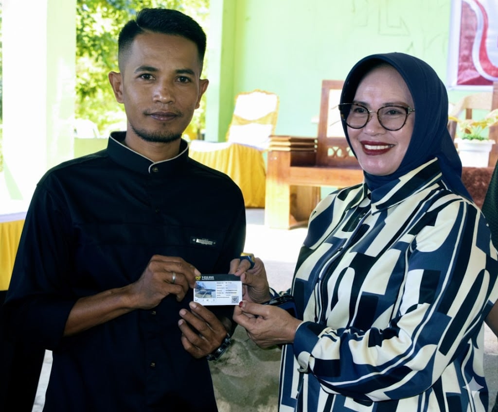 Dukung Ekonomi Keluarga Pesisir, Ny. Maryam Sofyan Puhi Serahkan E-Pas Kecil Gratis bagi 60 Nelayan Batuda’a Pantai